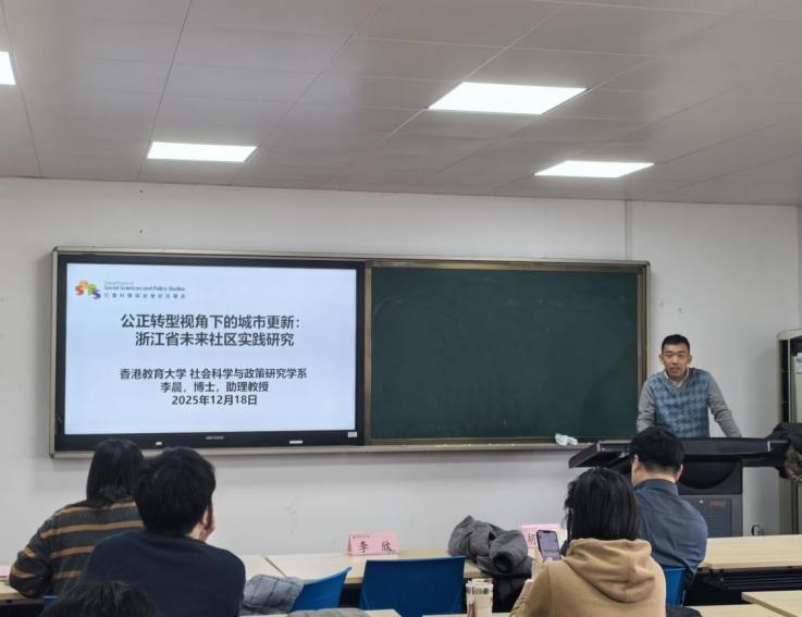 随后,李晨教授以《公正转型视角下的城市更新:浙江省未来社区实践研究》为题展开分享。李教授从社会公正与空间治理角度,探讨了浙江省未来社区建设中的政策逻辑、社会参与与空间重构。他指出,城市更新不仅是物质空间改造,更应关注社区参与、权益分配与过程公正,推动形成更具包容性与可持续性的城市发展路径。